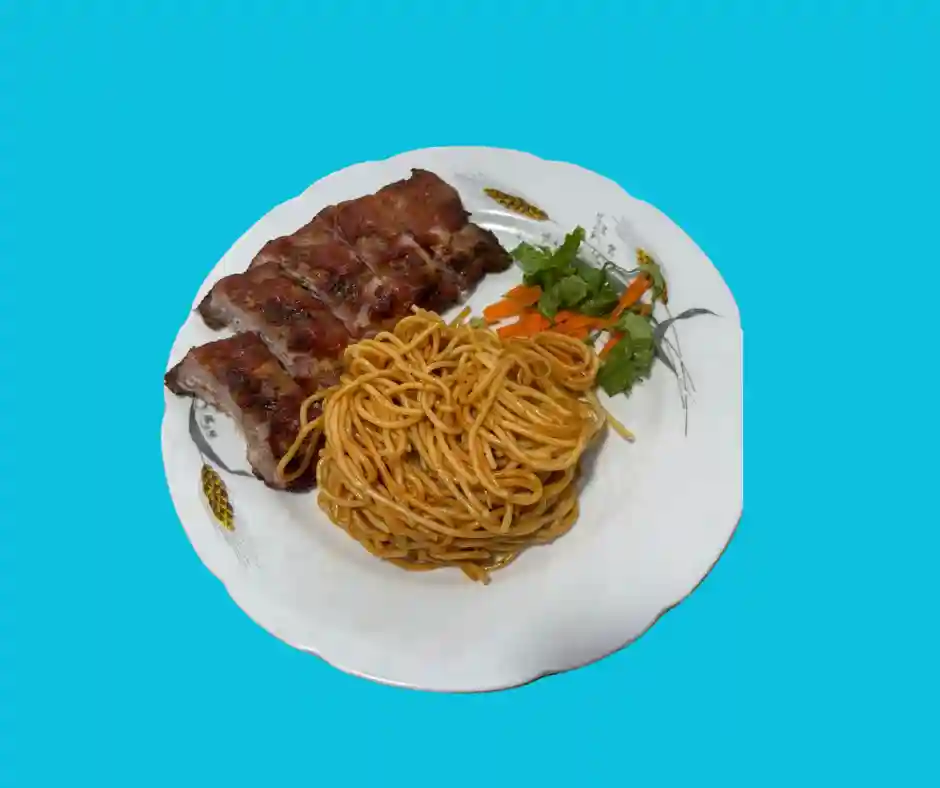 Tout les plats sont accompagnés de riz aux pois, salade verte , salade de pomme de terre, plantains, coleslaw, pois vers, macaroni au fromage et spaghetti