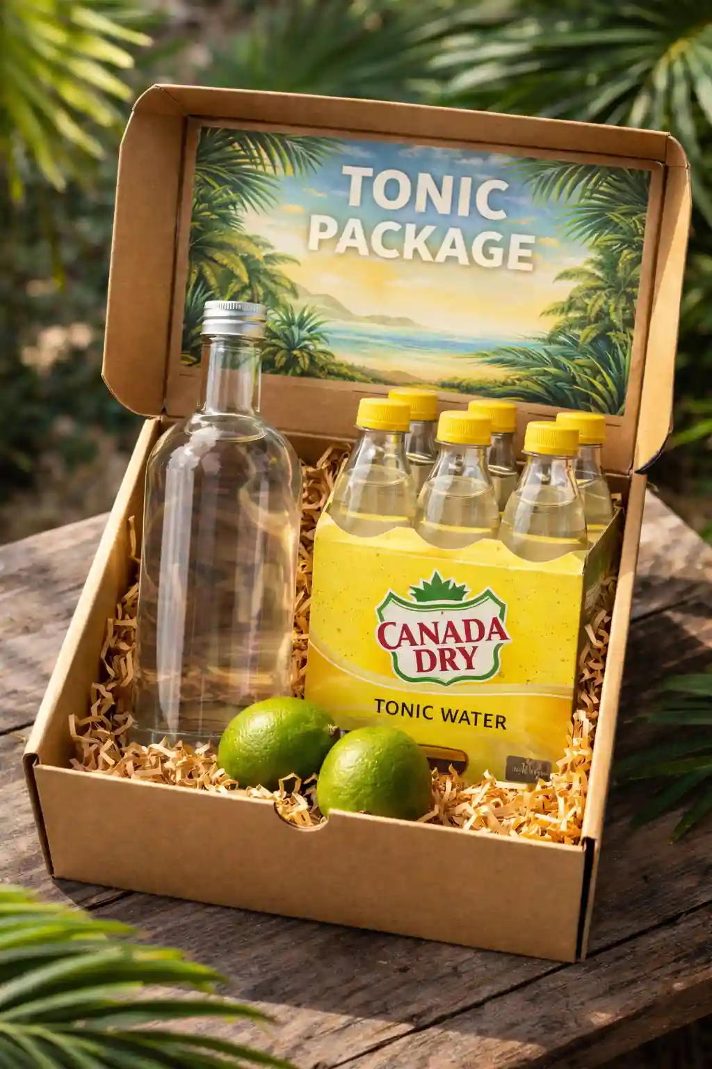 1 Bouteille d'Alcool de Votre Choix, 1 Pack de X6 Tonic Water, 2 Citrons Vert