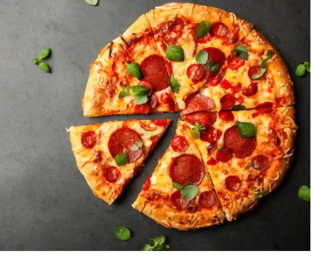 Tomate, mozzarella, pepperoni, poivrons rôtis,oignons caramélisés,, origan