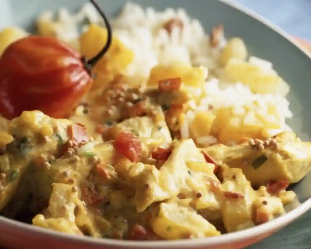 Sauce au lait de Coco et Gingembre frais dés de poivrons riz blanc