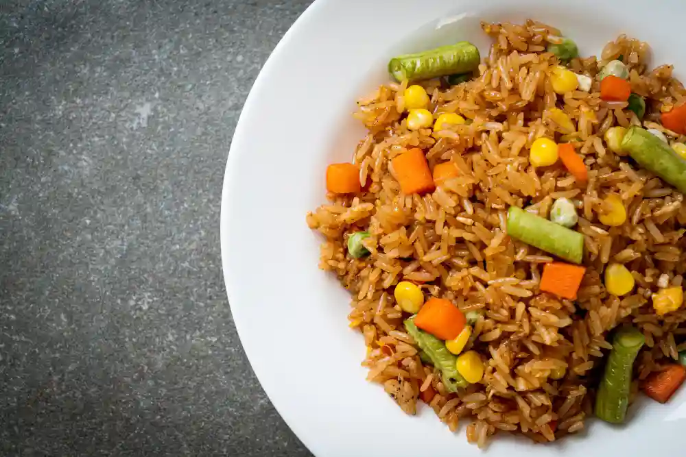 Riz sautés, Maïs, Carottes, Edamame, Oi…