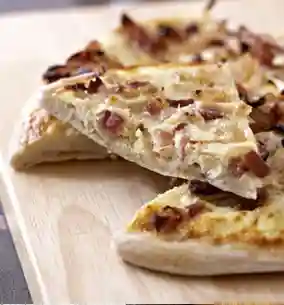 Flammenküche style, Cream base, Mozzarella, Onion and bacon