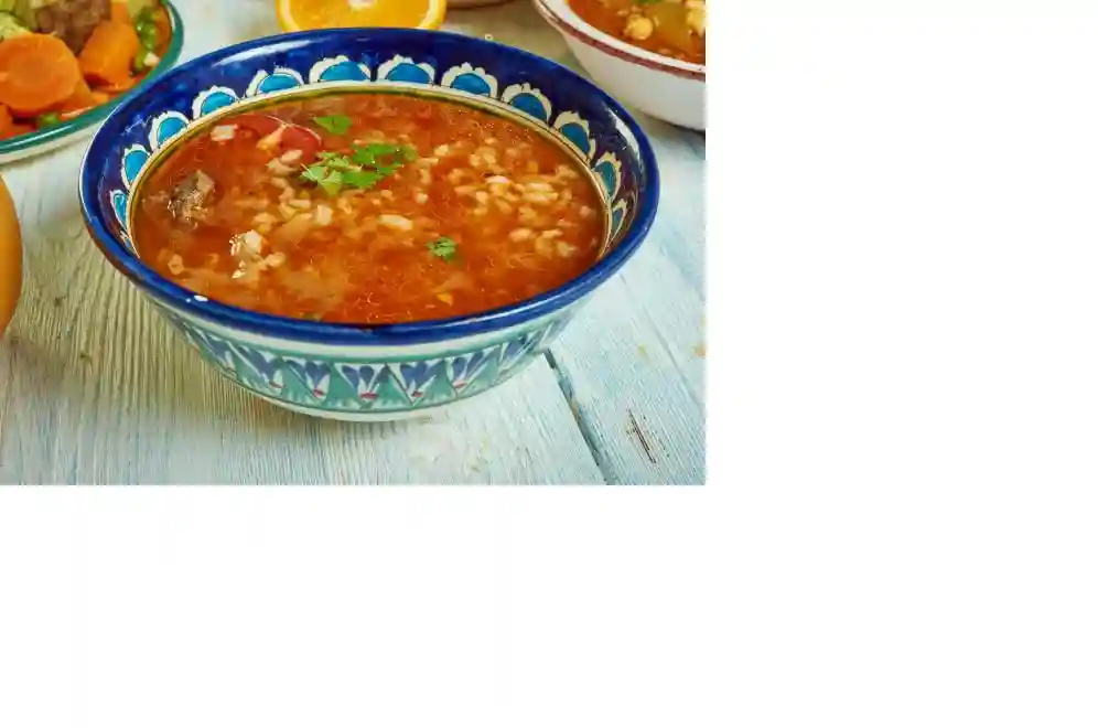 Agneau, Oignons, Ail, Carottes, Tomates, Celeri, Pois Chiches, Fèves, épices Raz El Hanout, sel et poivre