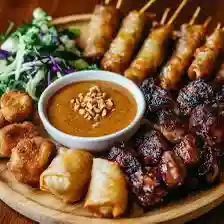 3 gyoza, 2 nems, 2 samoussas, brochette…
