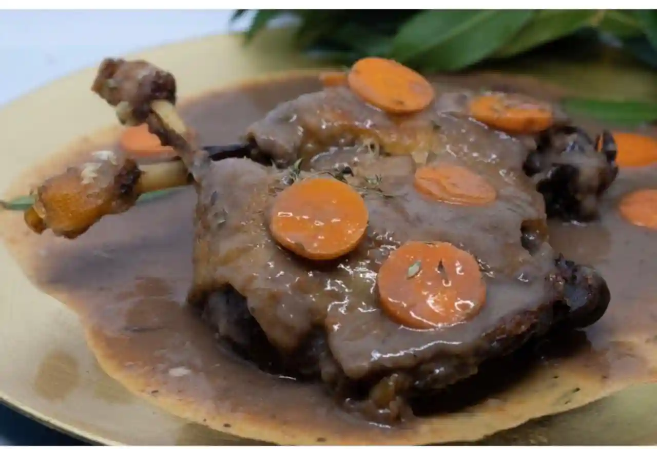 Plat Signature du Restaurant, une Banane Plantain Farcie à la Chiquetaille de Morue, Coulis de Poivrons Rouge au Lait d…