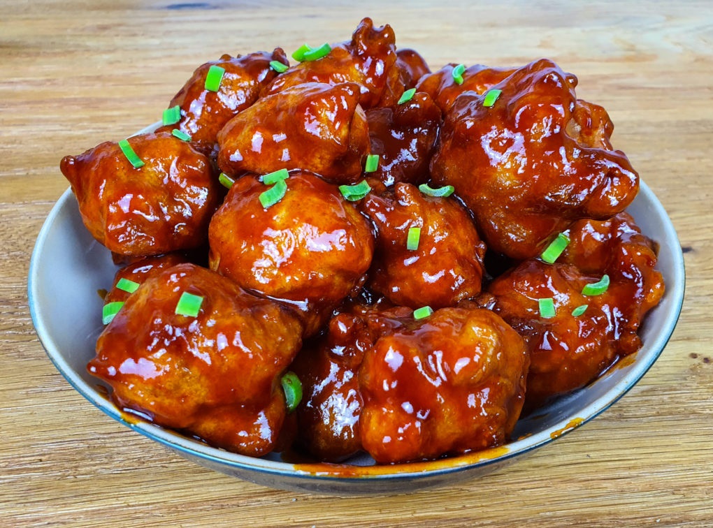 Poulet, Ail, Miel, Gingembre, Sauce soja, huile de Sésame, Oignons, Poivrons