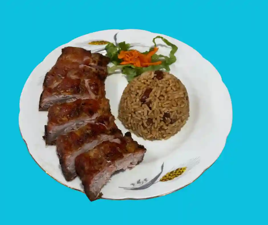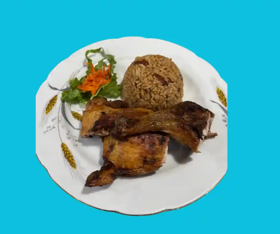 Tout les plats sont accompagnés de riz aux pois, salade verte , salade de pomme de terre, plantains, coleslaw, pois ver…